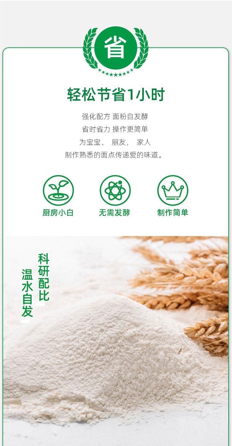 仙特自發(fā)小麥粉,精選優(yōu)質(zhì)北方小麥,添加精確配比的酵母,使用方便,無(wú)需額外添加酵母。成品蓬松柔軟,口感細(xì)膩,麥香濃郁。適用于制作包子、饅頭、手搟面等面食,是家庭面食的理想選擇。