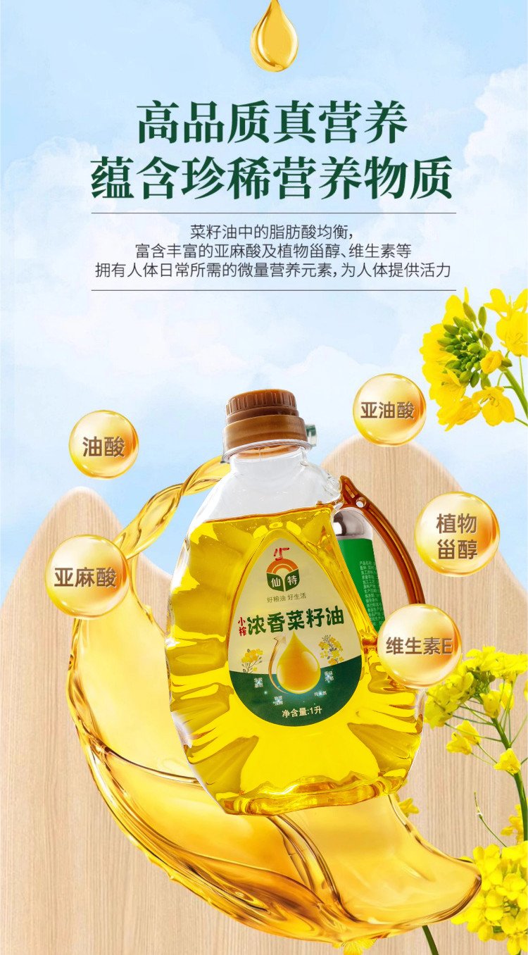 仙特壓榨菜籽油,源自四川綿陽精選優(yōu)質非轉基因油菜籽,秉承傳統(tǒng)小榨工藝,熱榨濃香,冷榨純香,充分保留了菜籽的營養(yǎng)成分與濃郁香氣。不添加任何化學溶劑,確保油品健康天然。成品油色澤清亮,適合煎、炒、炸、蒸等多種烹飪方式。