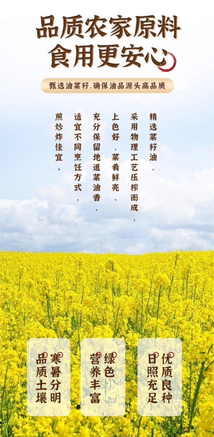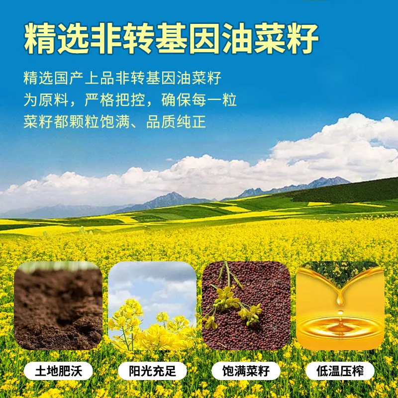 仙特壓榨菜籽油,源自四川綿陽精選優(yōu)質(zhì)非轉(zhuǎn)基因油菜籽,秉承傳統(tǒng)小榨工藝,熱榨濃香,冷榨純香,充分保留了菜籽的營養(yǎng)成分與濃郁香氣,不添加任何化學(xué)溶劑,確保油品健康,天然成品油色澤清亮,適合煎炒,炸蒸等多種烹飪方式。